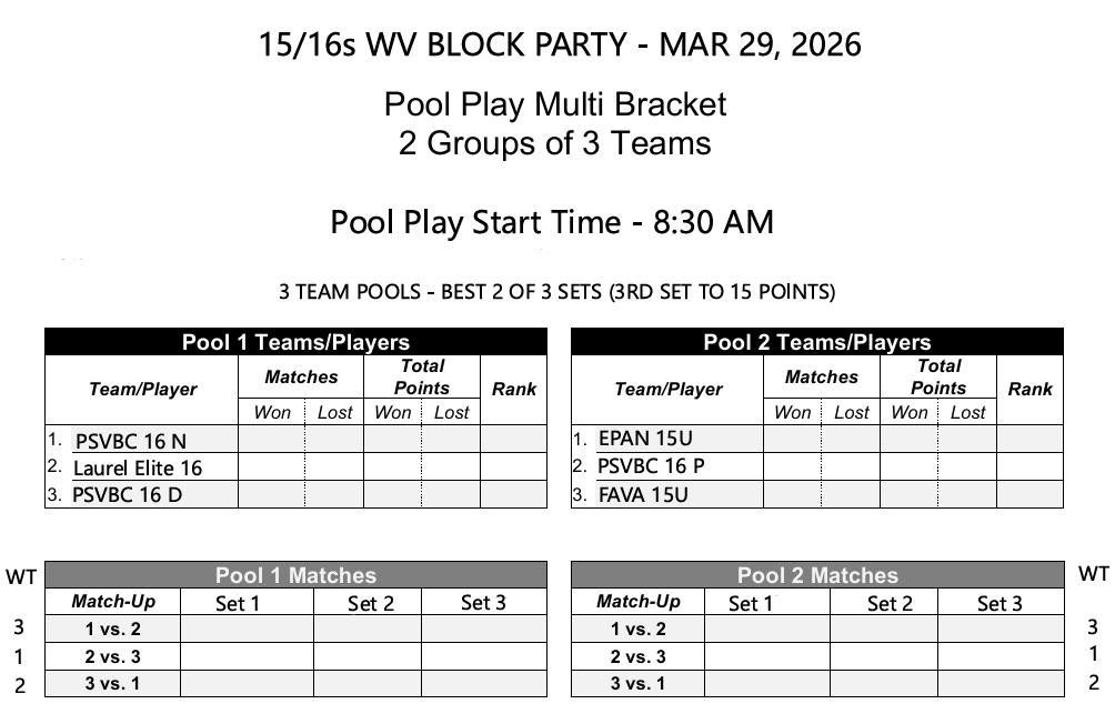 MAR 29 - 15/16s WV BLOCK PARTY (16U)