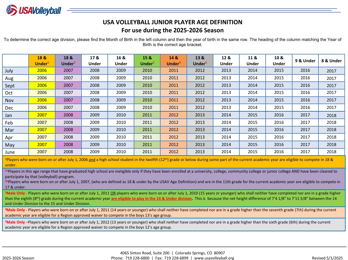 4) COMPLETE YOUR PLAYER'S REGISTRATION (WITH POTOMAC STORM VBC), IN THEIR CORRECT AGE GROUP (12U-18U), IN ACCORDANCE WITH THE USAV JUNIOR PLAYER'S AGE CHART LOCATED ON THIS PAGE